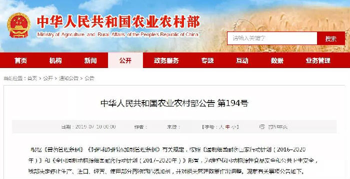 中華人民共和國農(nóng)業(yè)農(nóng)村部公告 第194號(hào)?