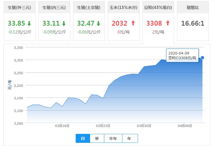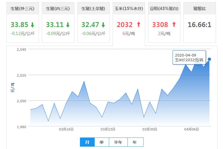 2020年04月09日,今日全國玉米均價為2032元/噸,較昨日上漲6元/噸。