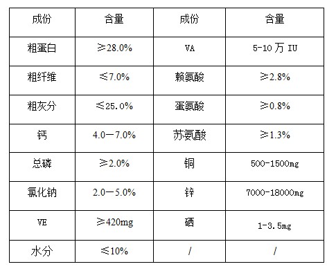 進口優(yōu)質(zhì)魚粉、 乳清粉、 膨化大豆、發(fā)酵豆粕、 復(fù)合維生素、復(fù)合有機微量元素、氧化鋅、賴氨酸、蘇氨酸、蛋氨酸、色氨酸、進口復(fù)合酶、復(fù)合益生菌、復(fù)合酸化劑、復(fù)合抗氧劑、復(fù)合甜味劑、磷酸氫鈣、氯化鈉、碳酸鈣等。